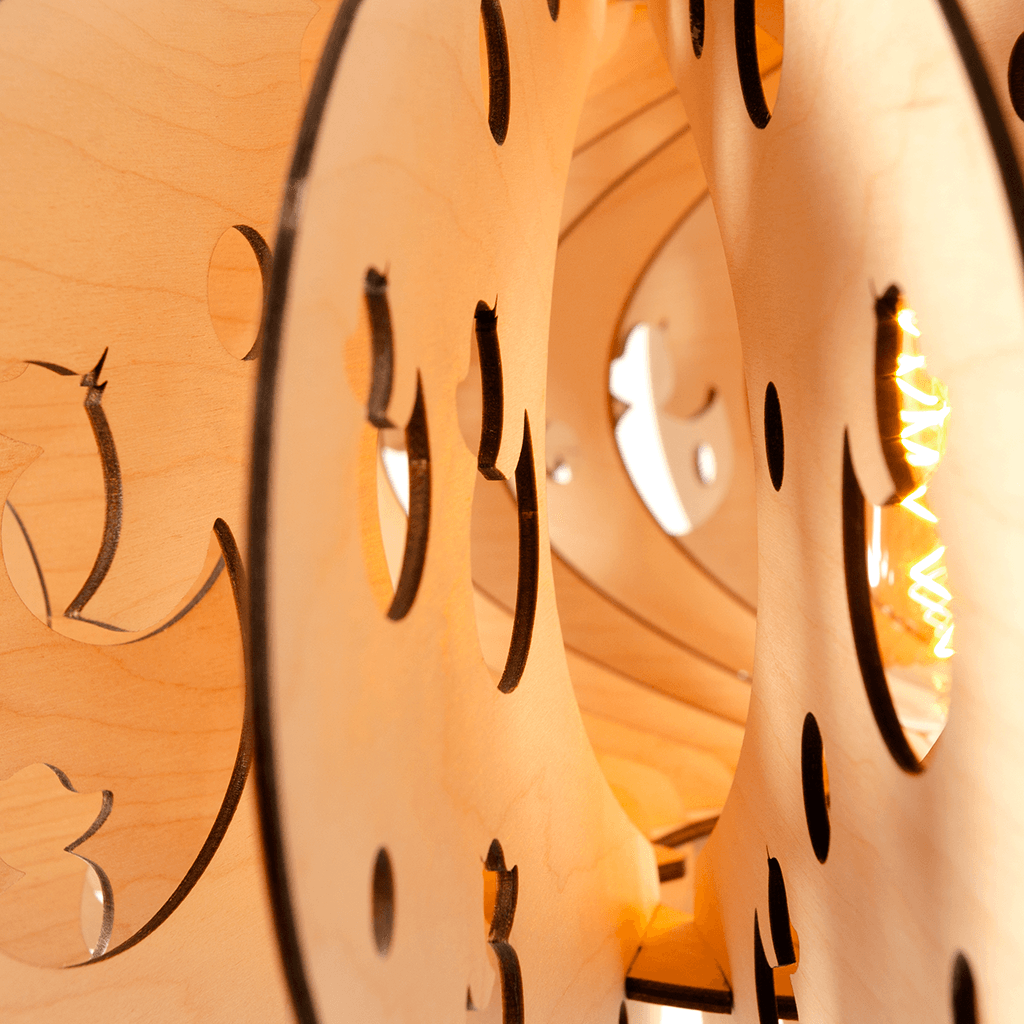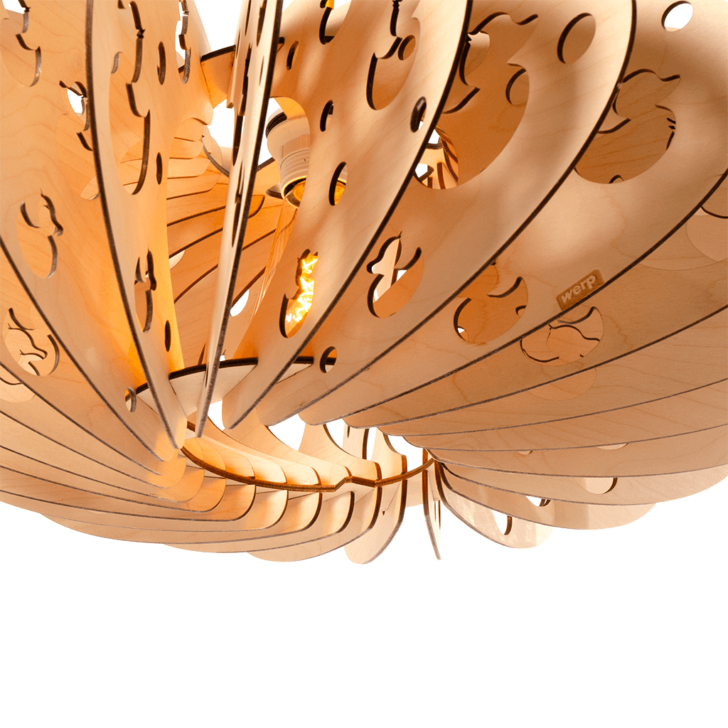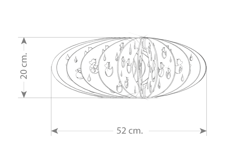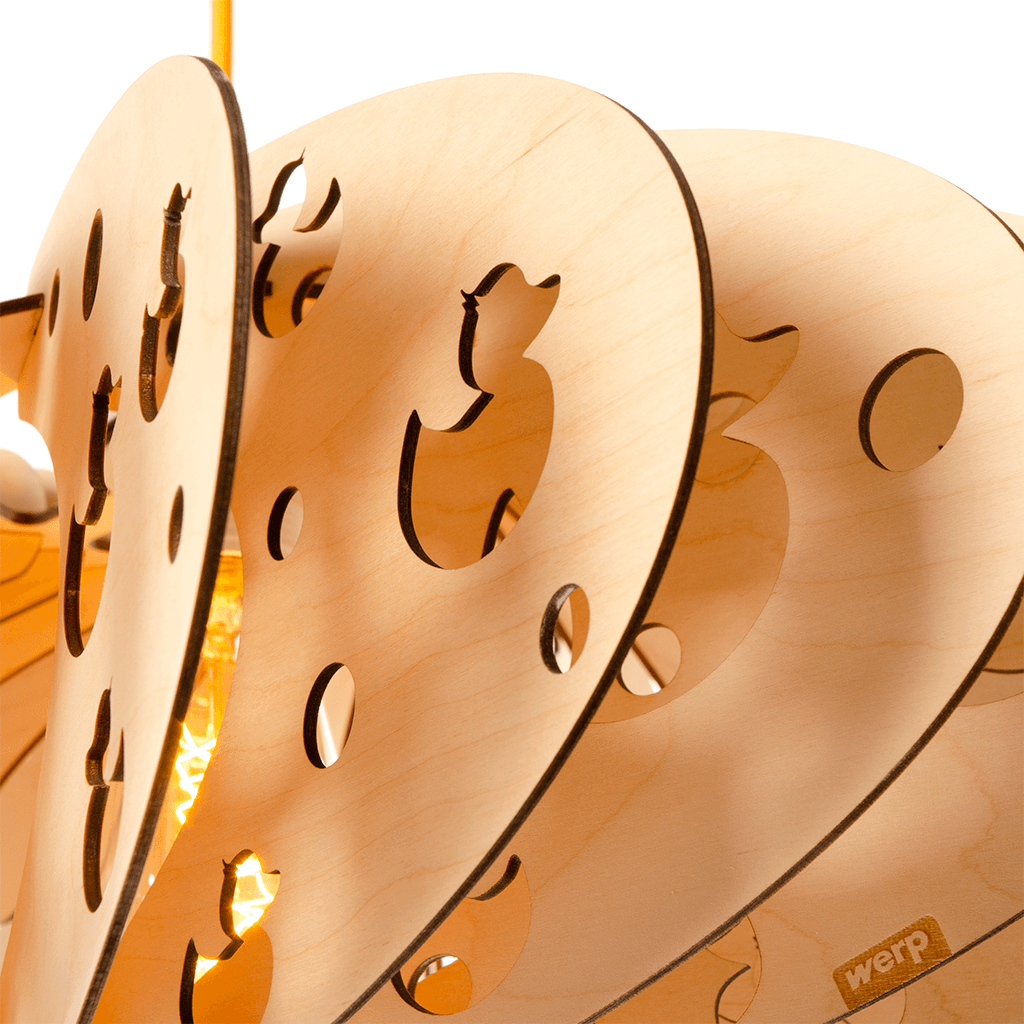 This lamp certainly has all its ducks in a row! 53 cm in diameter. Other sizes are possible too, as long as there’s room for a lightbulb. Want to know more? Just ask us.