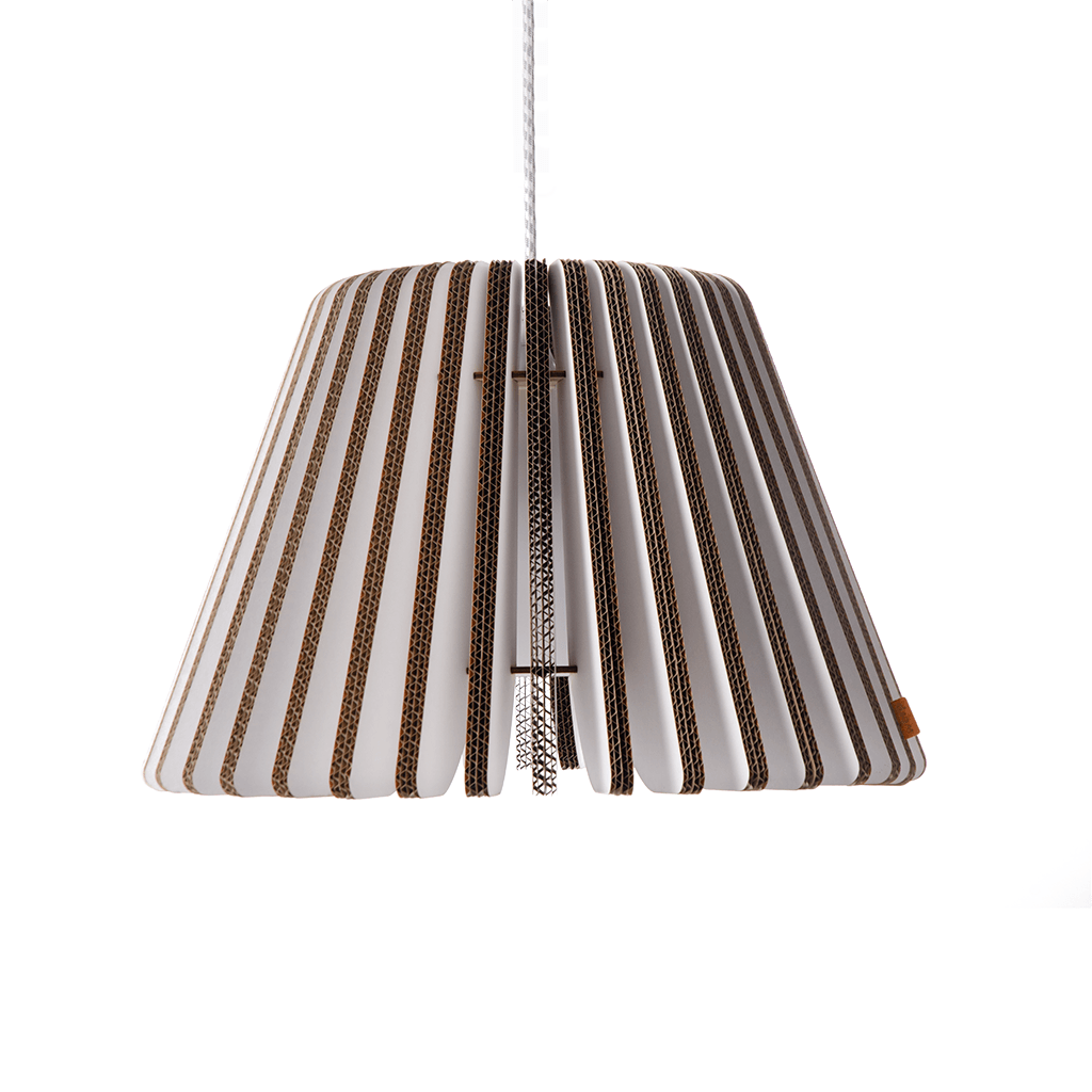 Die Form des klassischen Lampenschirms war die Inspiration für diese Lampe. Ansonsten hat sie aber wenig Klassisches. Mit 46 cm ist sie ein echter Hingucker. Auch erhältlich als Schirm für einen Lampenfuß. Mehr wissen? Frag uns einfach.