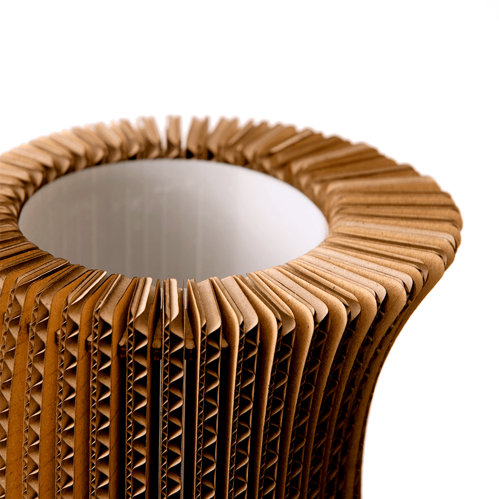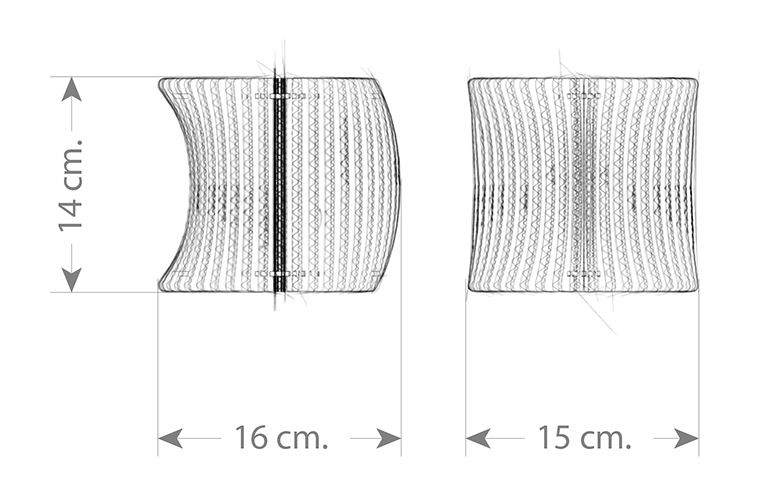 Aus jedem Blickwinkel eine andere Lampe. Durch seine asymmetrische Form ist sie echt etwas Besonderes. Standardmäßig hat sie einen Durchmesser von 15 bis 16 cm und passt auf einen Lampenfuß mit einer kleinen (E14) Fassung. Andere Größen sind auch möglich – Hauptsache, es passt eine Lampe rein. Mehr wissen? Frag uns einfach.