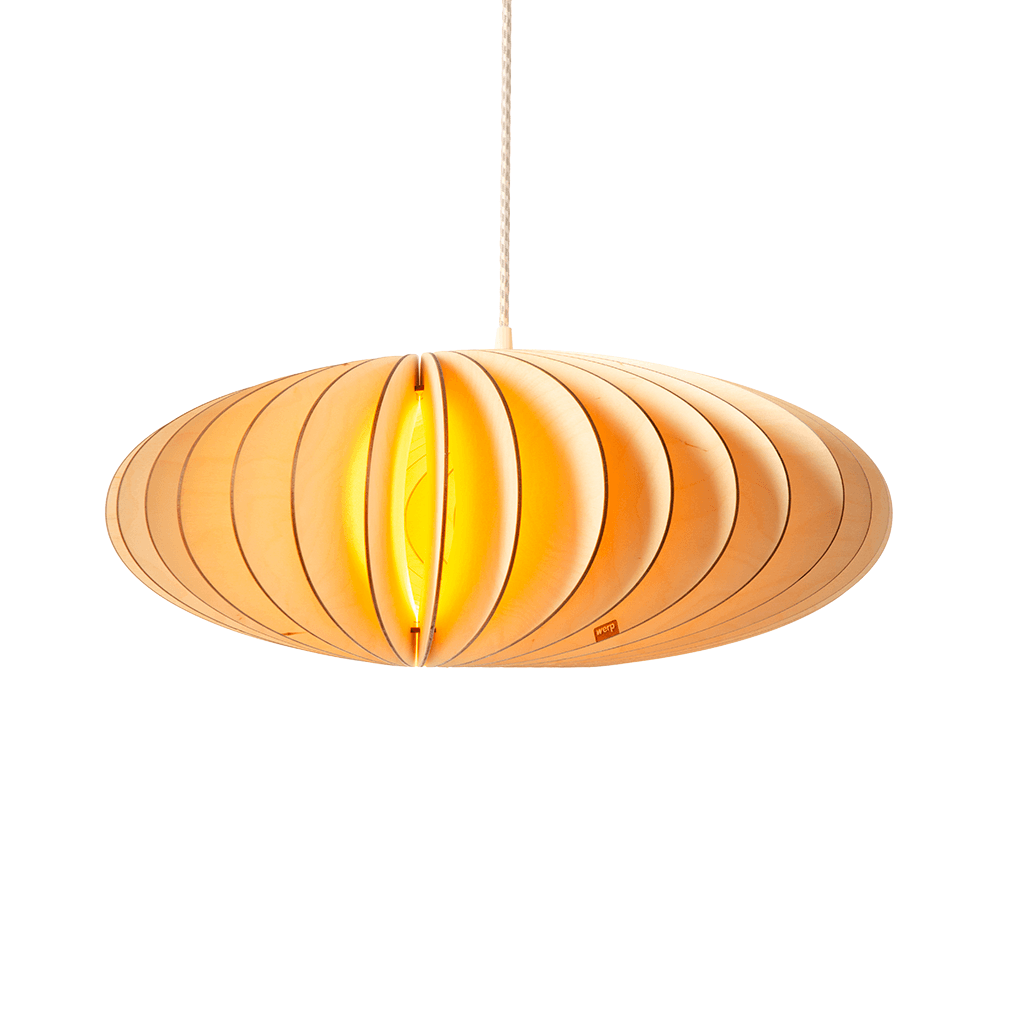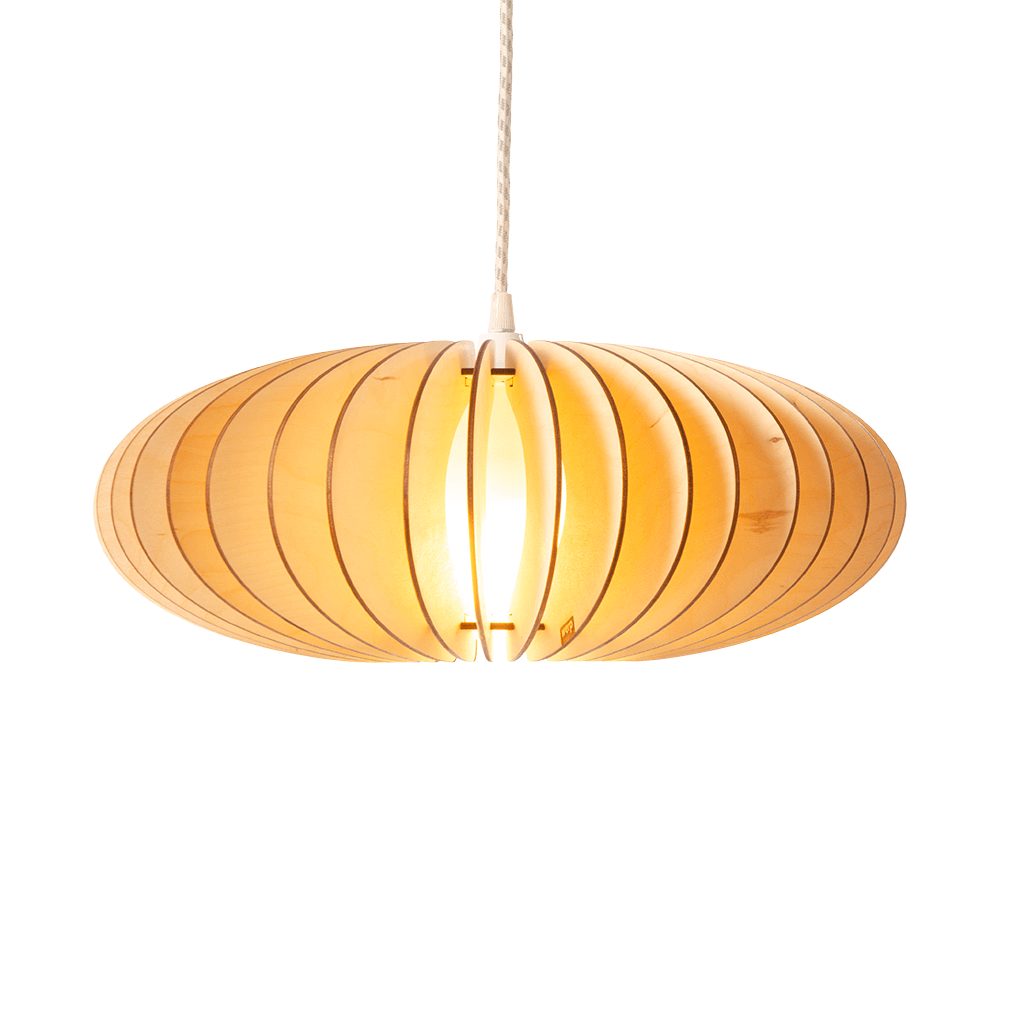 Onze houten lampen(-kappen) worden gemaakt van FSC gecertificeerd berken multiplex. Berken is zeer licht van kleur als het net gezaagd is en wordt onder invloed van daglicht langzaam wat donkerder en warmer van kleur.